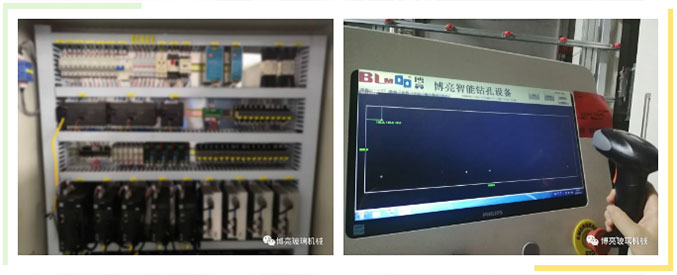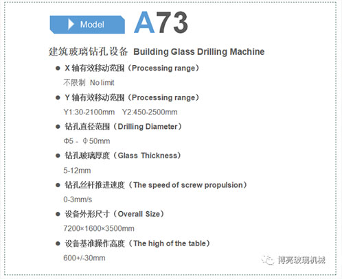 ①A73雙頭立式玻璃鉆孔設備,此設備鉆孔為玻璃豎直進料,上片可對接立式磨邊設備,出片可對接立式清洗設備,設備占地面積小,運輸方便;